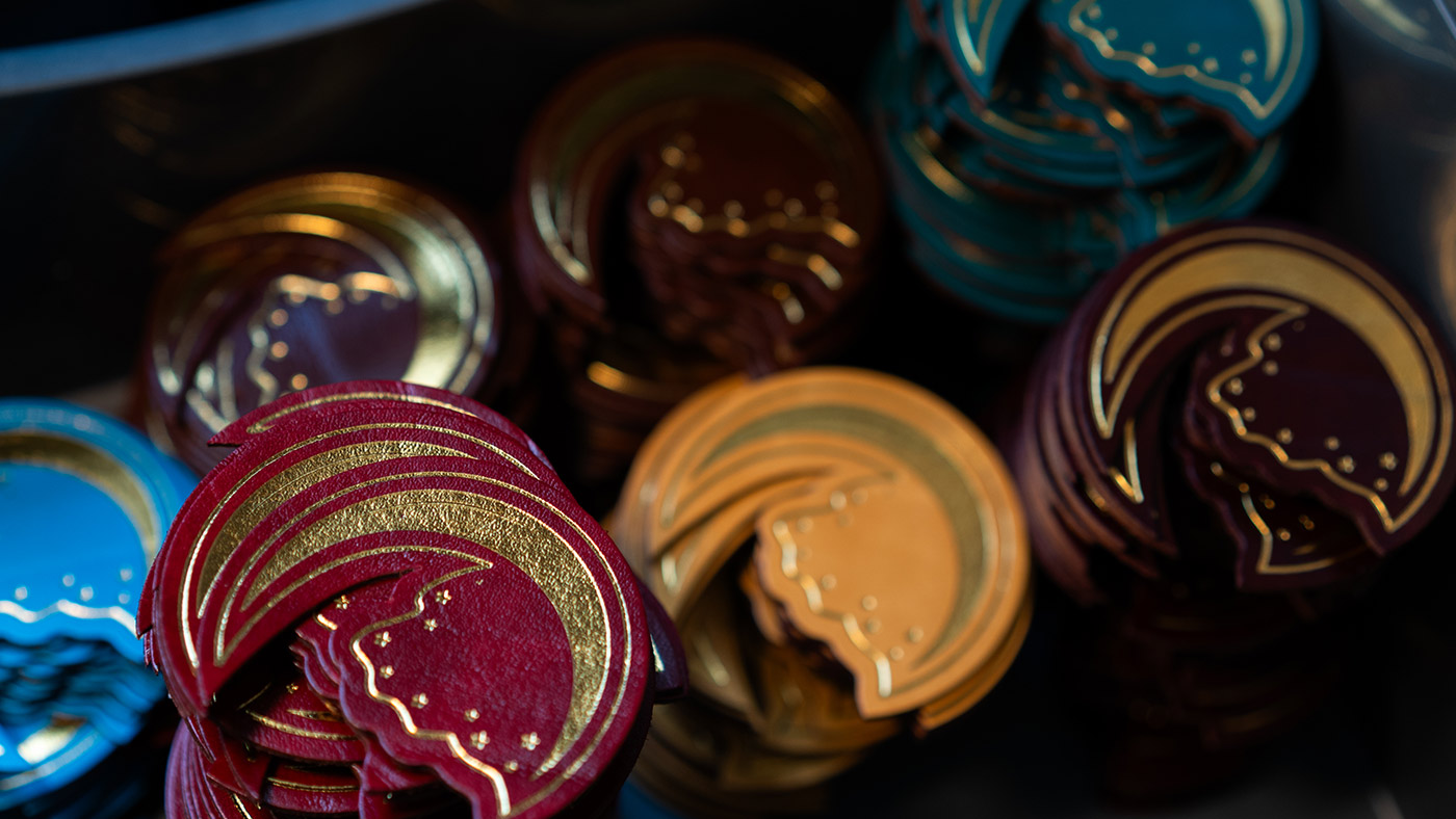 Una volta dorata, ogni sagoma viene rifinita e trasformata in un portachiavi completo. Aggiungiamo l’anello metallico, controlliamo lo spessore, levighiamo i bordi, curiamo i dettagli.