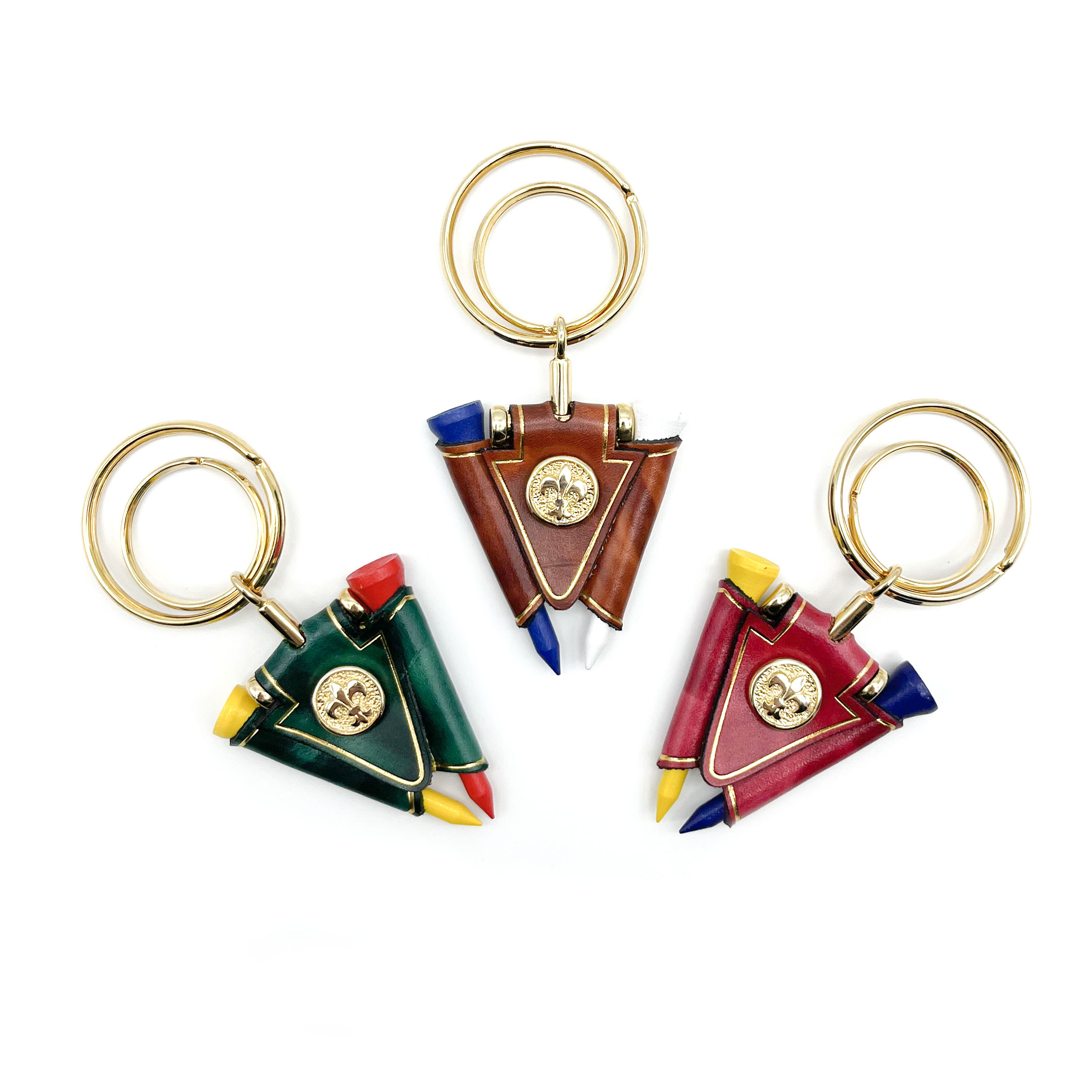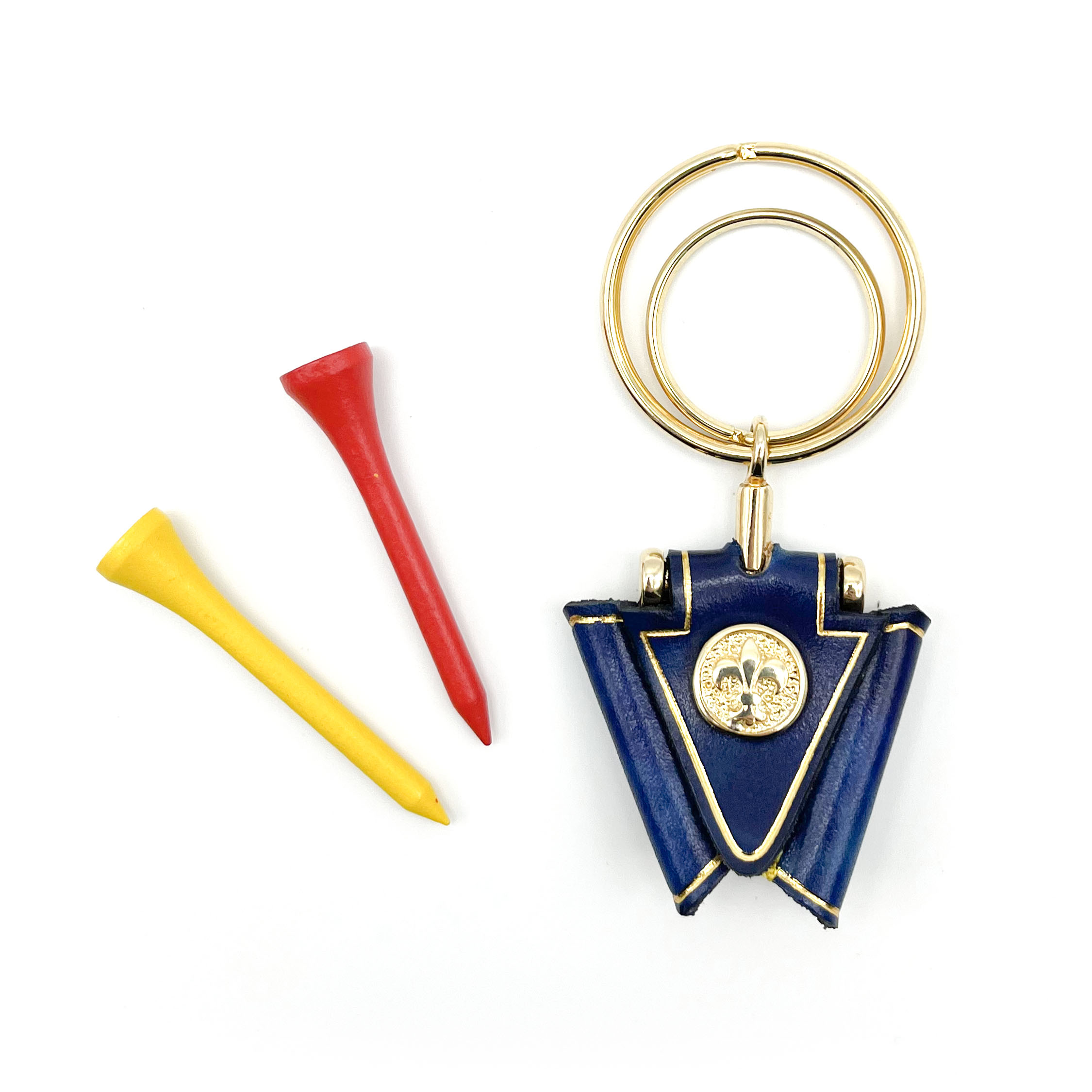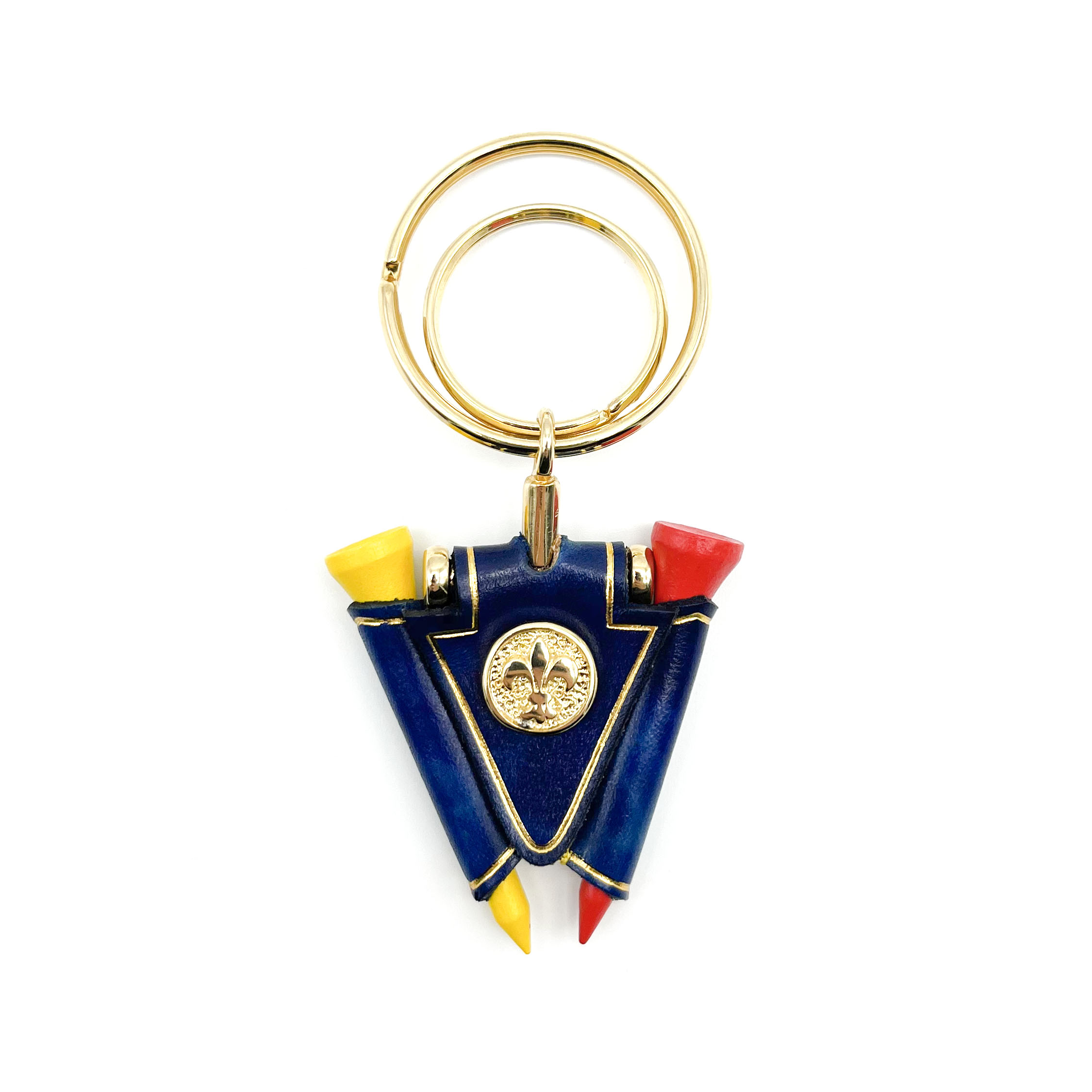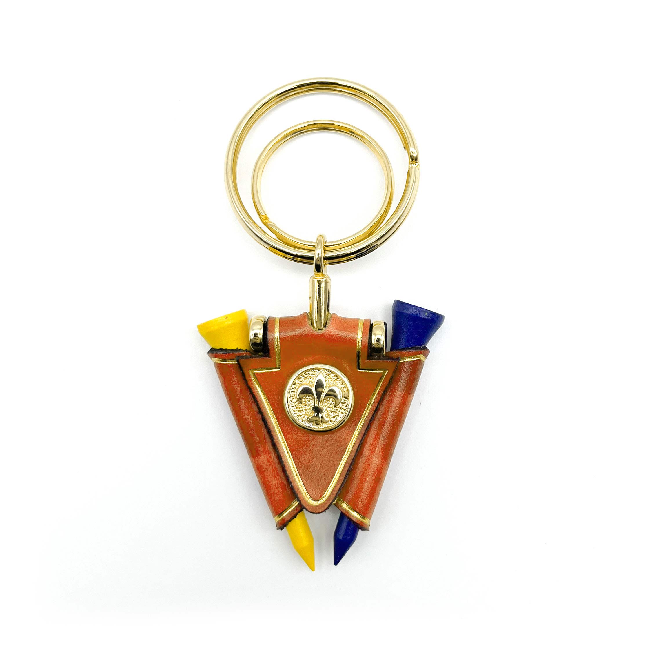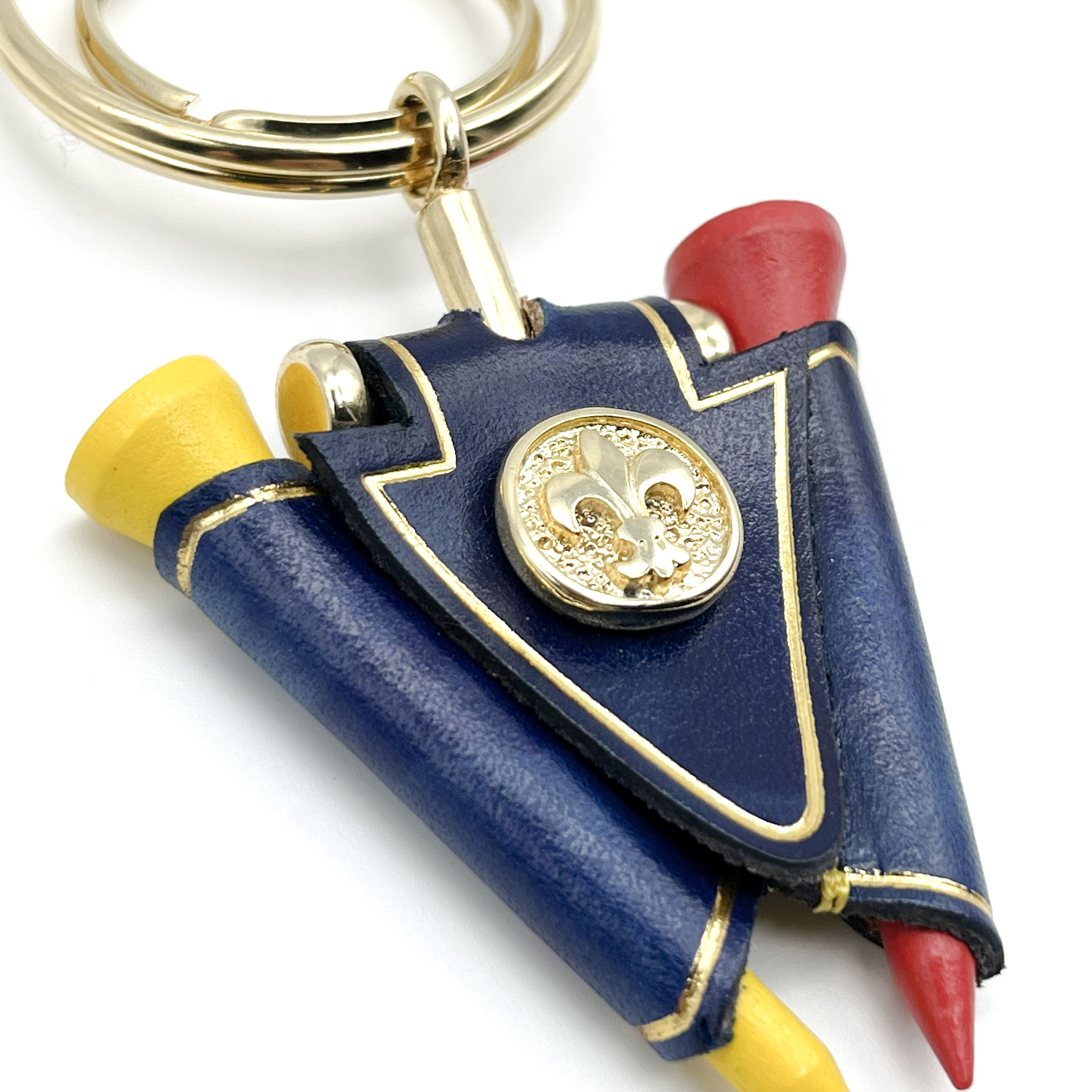 Il nostro portachiavi Golf con tee è il regalo perfetto per gli amanti del golf e del vero Made in Italy. Realizzato interamente a mano nel nostro laboratorio di famiglia a Firenze, questo portachiavi in cuoio esprime tutta la qualità e l'artigianalità tipica della nostra città. La parte superiore dell’accessorio presenta due anelli in oro o argento per tenere le chiavi, mentre sul fronte spicca un piccolo accessorio, anch’esso dorato o argentato, con il giglio di Firenze, simbolo della città.