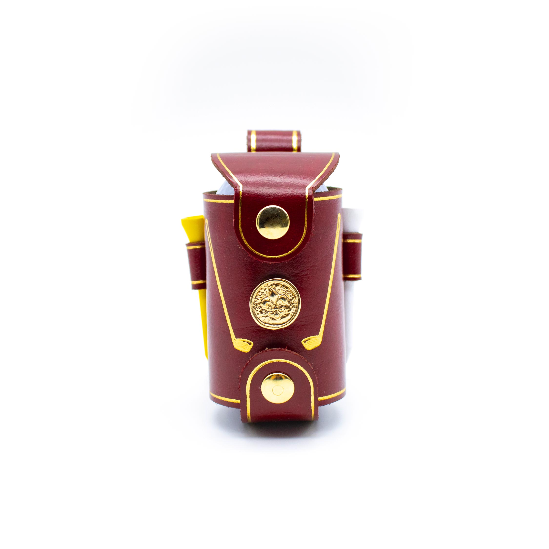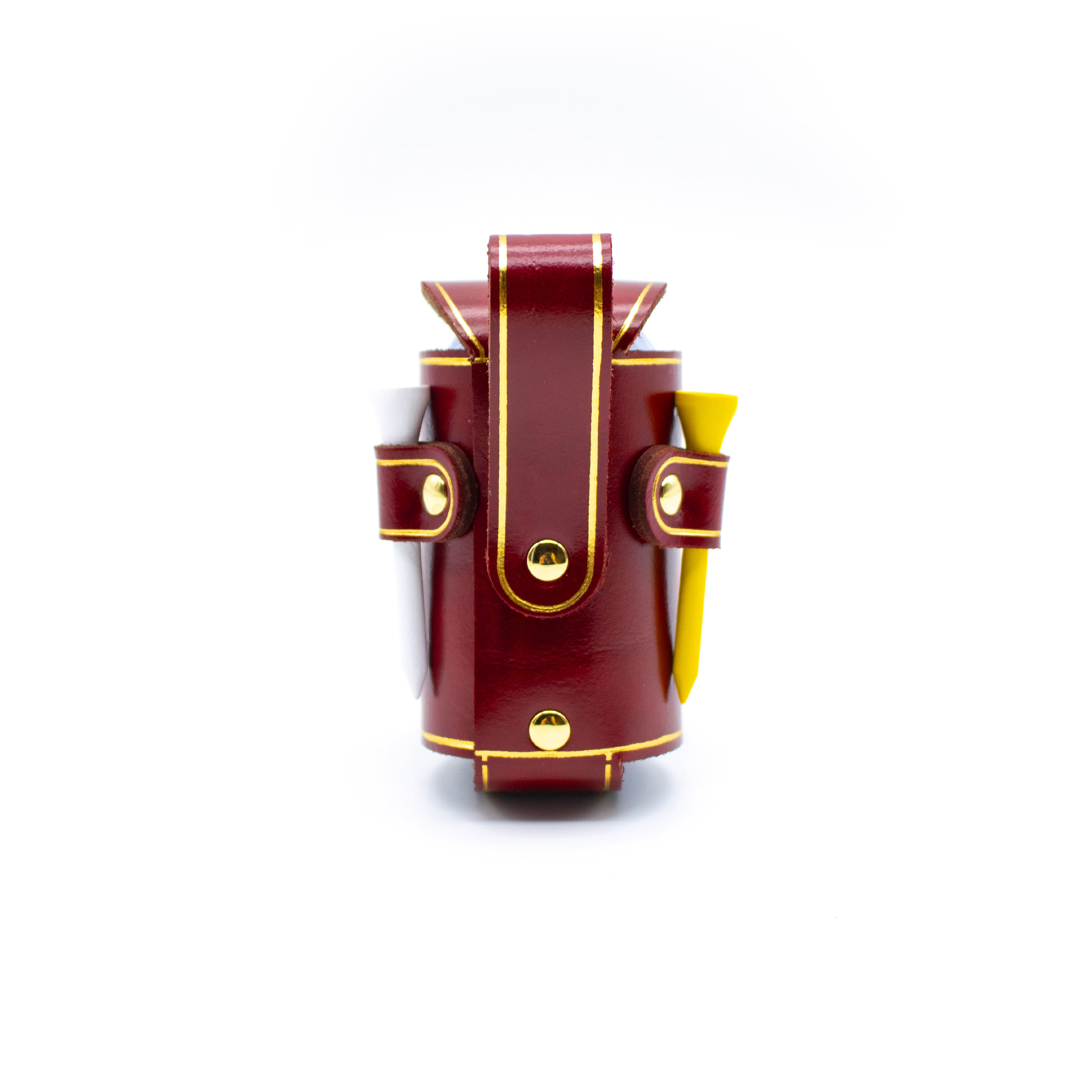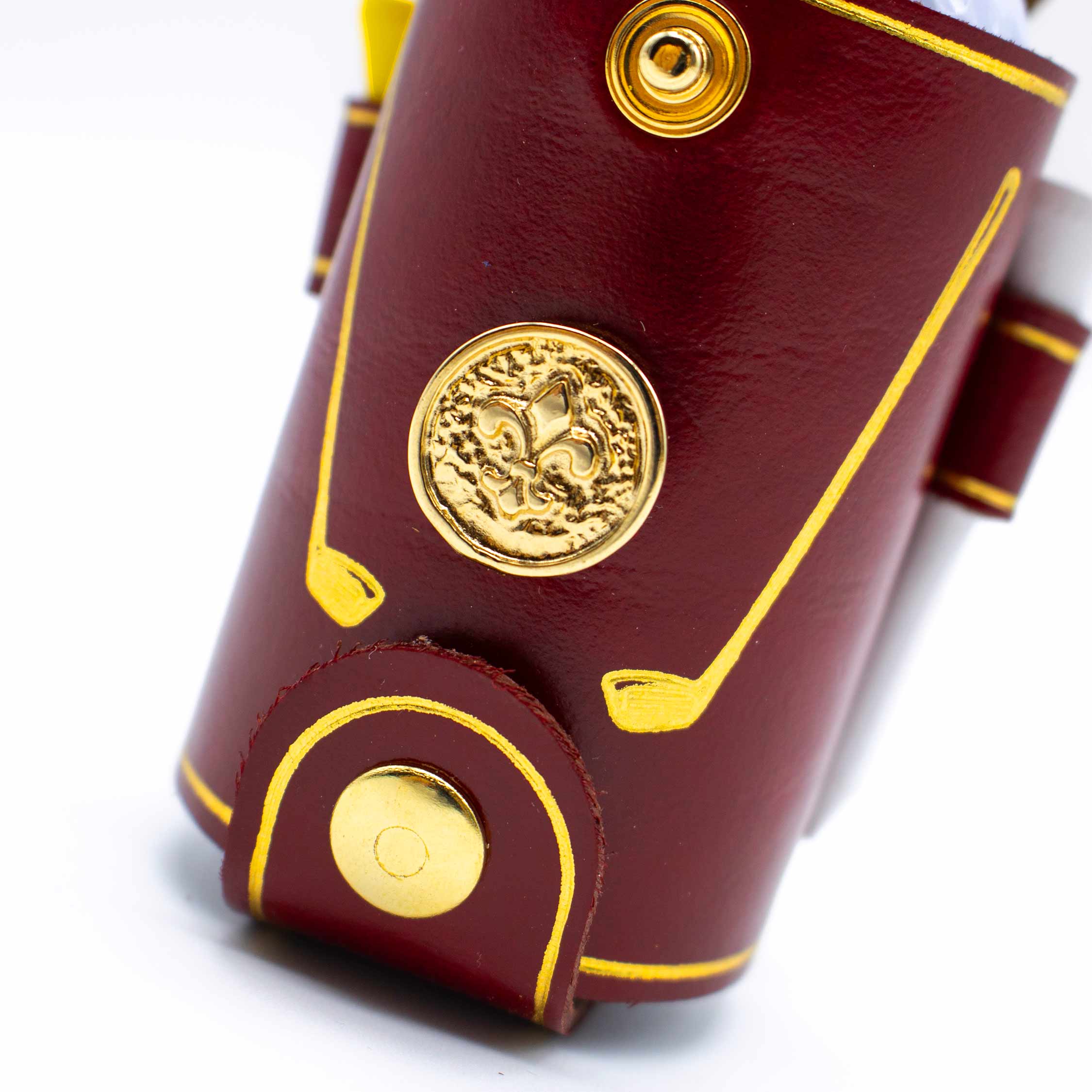 Il nostro porta palle da golf doppio David è realizzato in pregiato rigenerato di cuoio, un materiale eco-sostenibile, innovativo e meno costoso del più conosciuto cuoio. Questo accessorio in pelle viene creato tramite una lavorazione tipica della tradizione fiorentina, che si esalta nella decorazione artistica a caldo, la quale disegna due mazze da golf sul fronte. Accanto a esse, vi è un bottone rimovibile, perfetto per essere utilizzato come marcatore nel punto dove si è fermata la pallina. Il bottone, sempre in ottica di omaggio alla nostra città di Firenze, ricorda il Fiorino, la più antica moneta fiorentina.