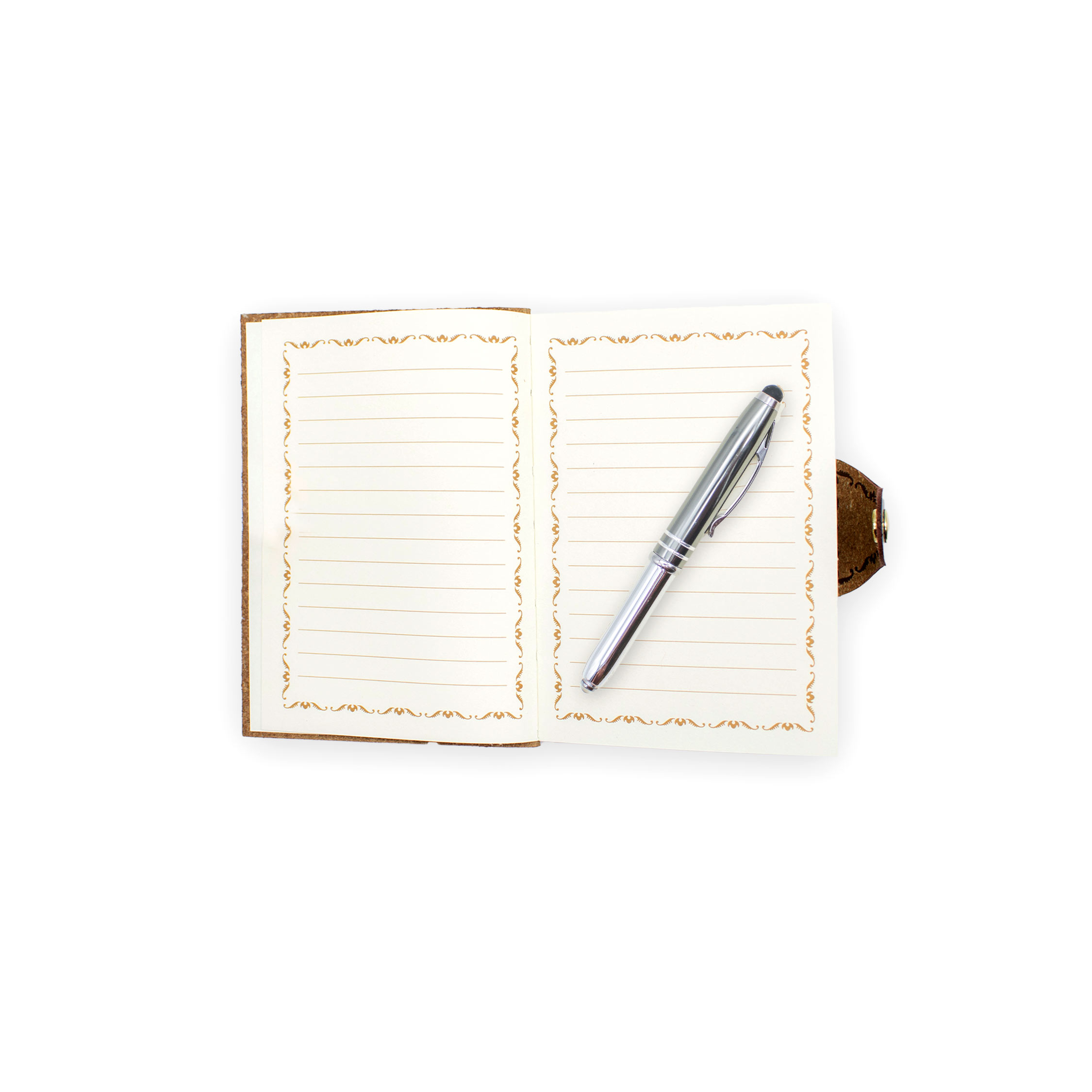All'interno, le pagine sono finemente decorate con un bordo elegante e offrono ampio spazio per la scrittura. Ogni pagina presenta linee che facilitano una scrittura ordinata e precisa.