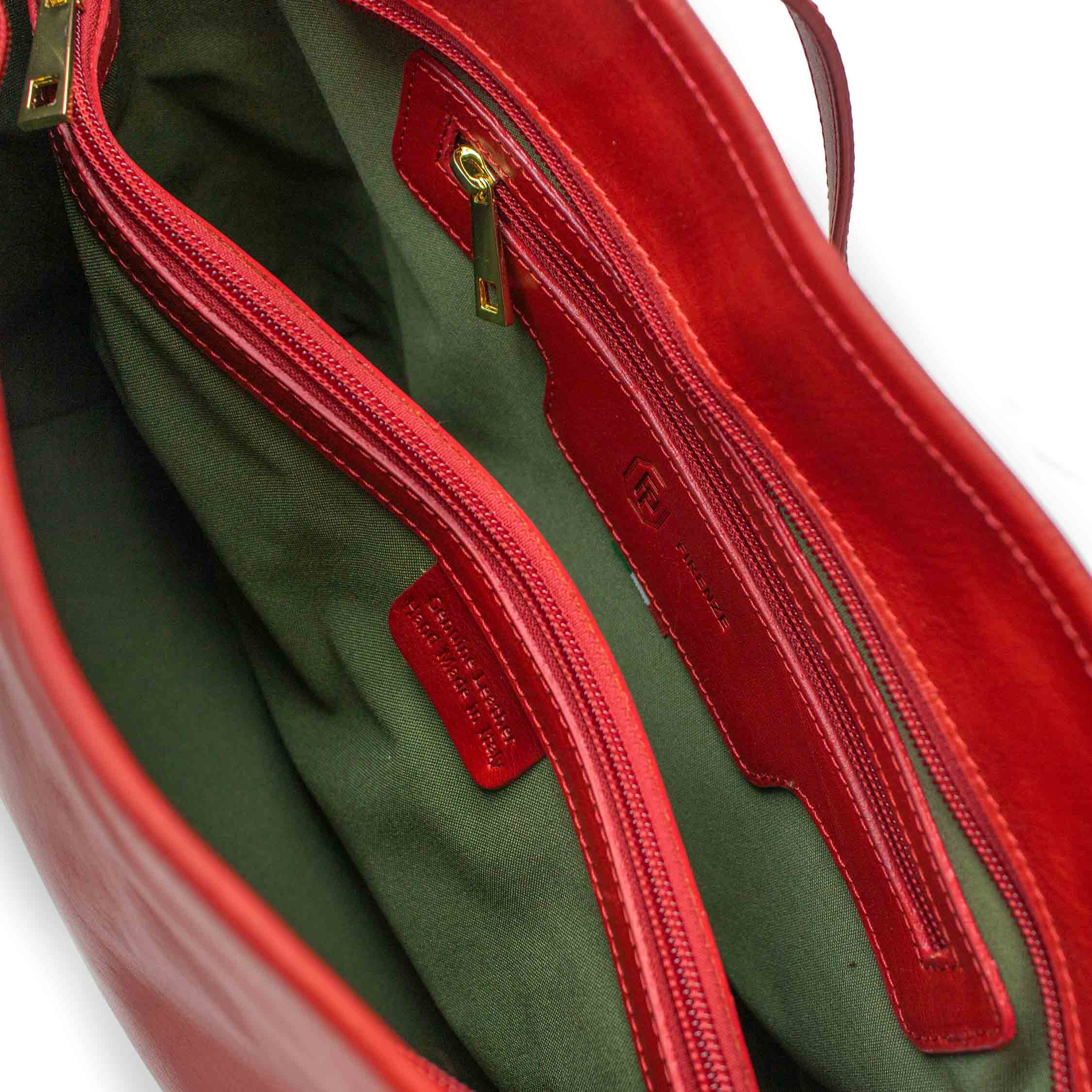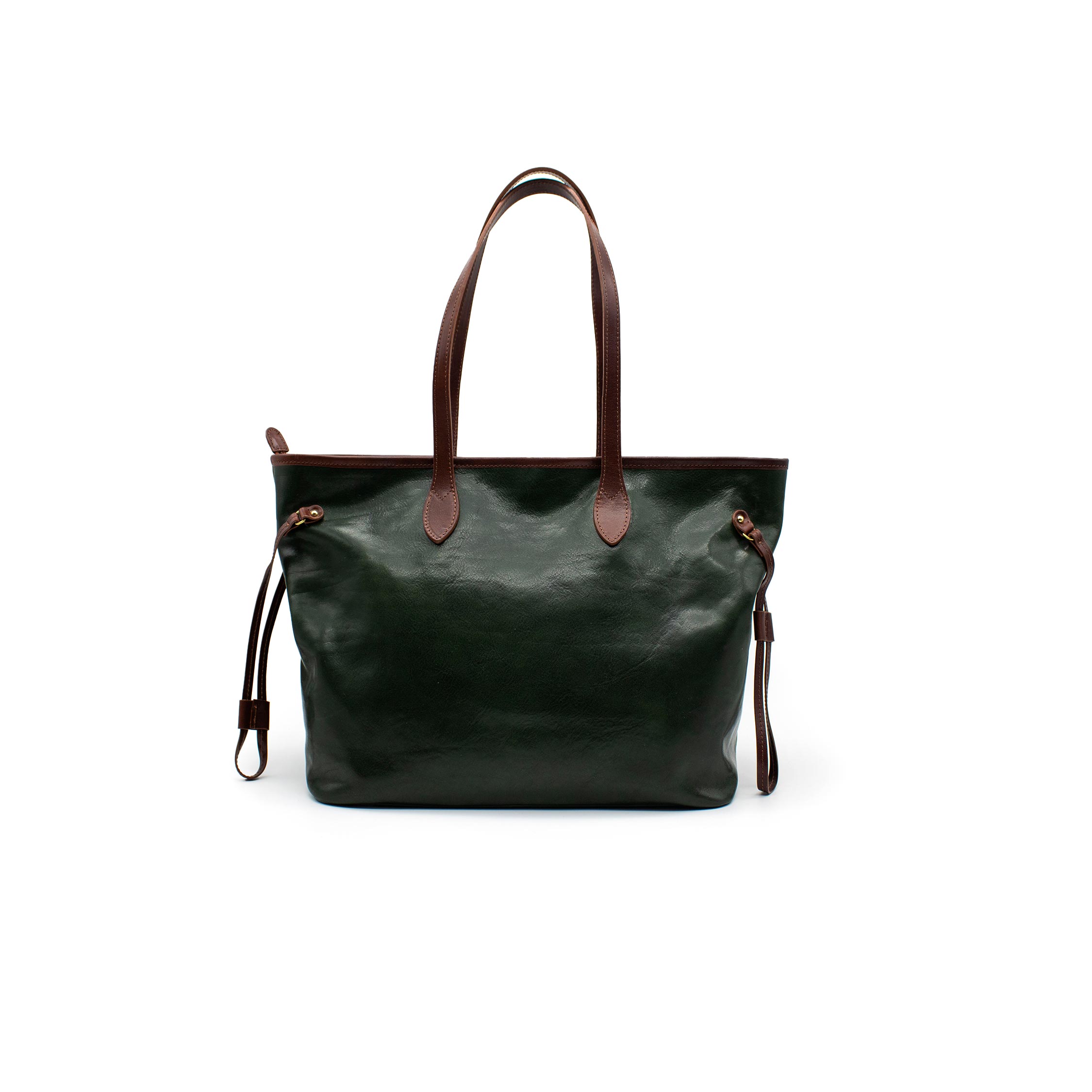 La pelle è tinta utilizzando materiali naturali come i tannini estratti da piante quali mimosa e castagno, permettendo alla borsa di sviluppare sfumature uniche nel tempo. Ogni borsa racconta una storia diversa, legata all'esposizione al sole e al tipo di utilizzo. La concia naturale è una tradizione toscana, mantenendo il primato nella produzione di questo tipo di pelle.