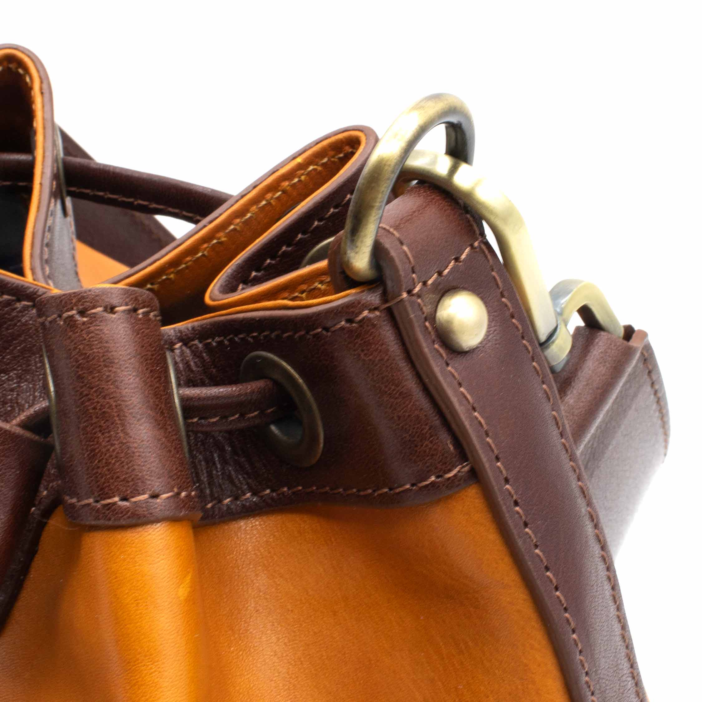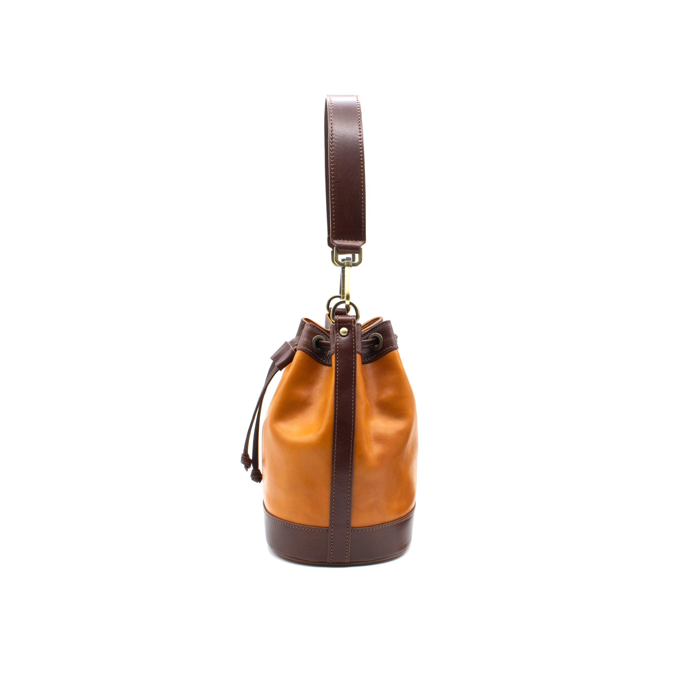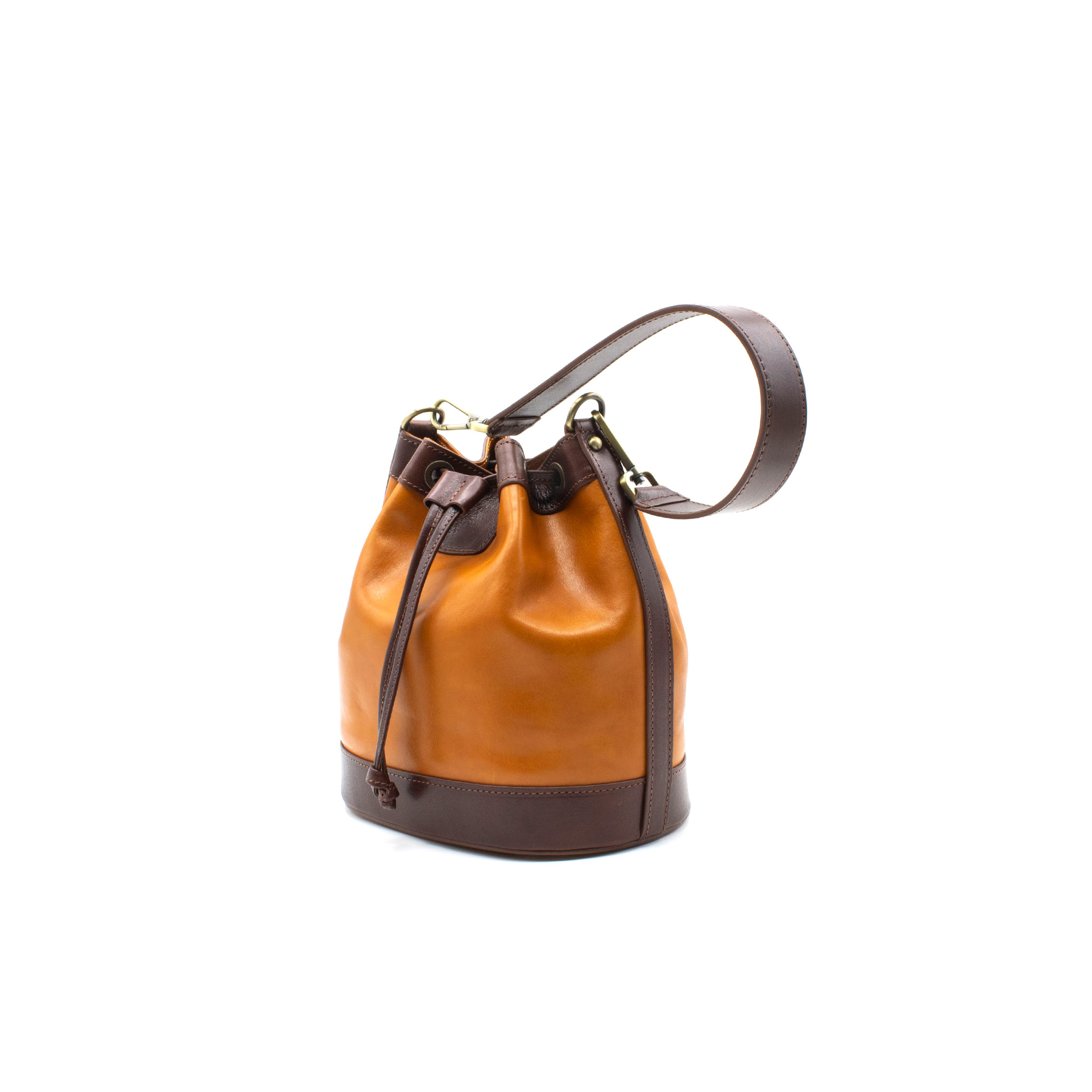 Prima della lavorazione, la pelle viene tinta con estratti vegetali naturali, come mimosa e castagno. Questo processo, tipico dell’artigianato toscano, permette alla pelle di sviluppare nuance uniche e irripetibili con l’uso e l’esposizione alla luce, rendendo ogni secchiello un pezzo originale e personale.