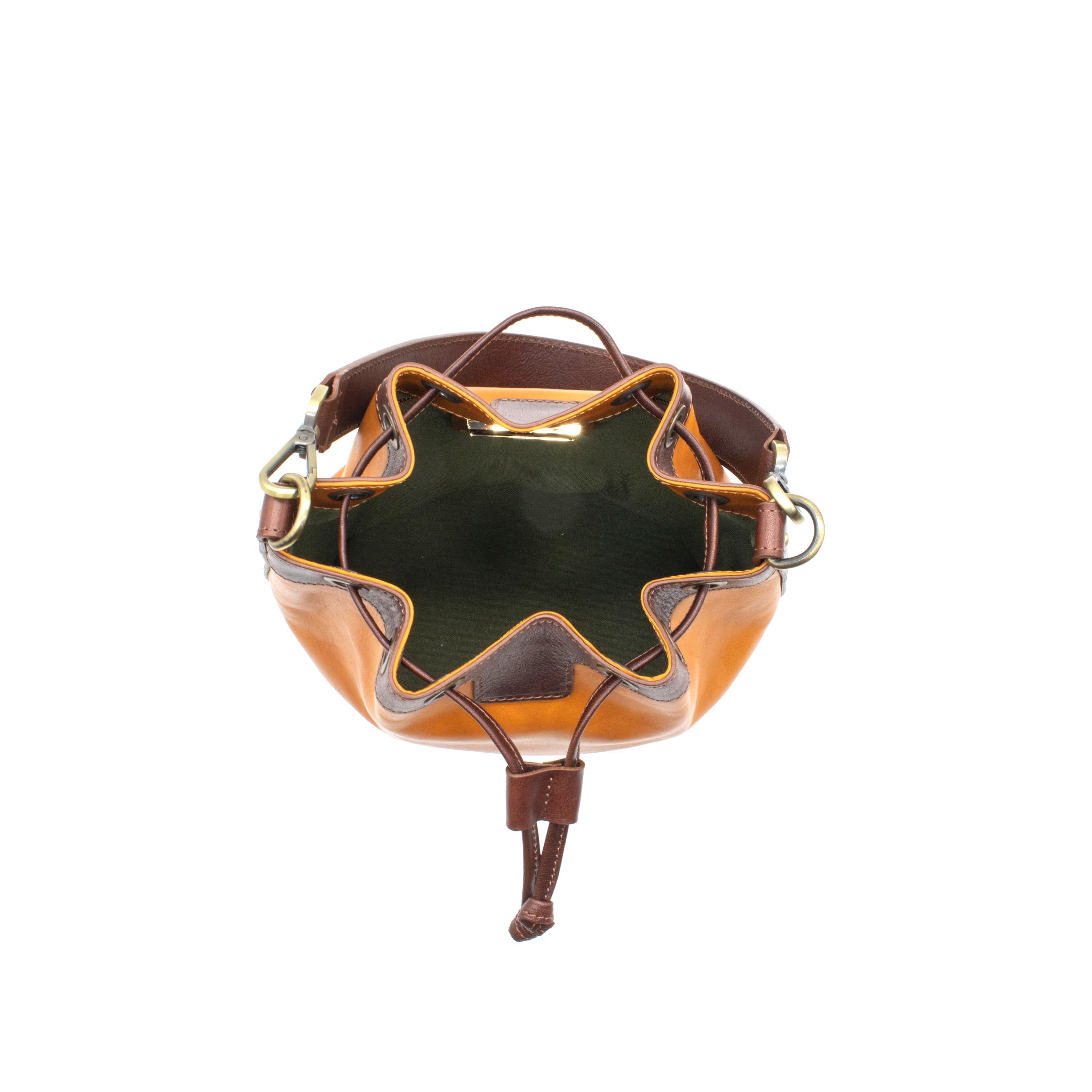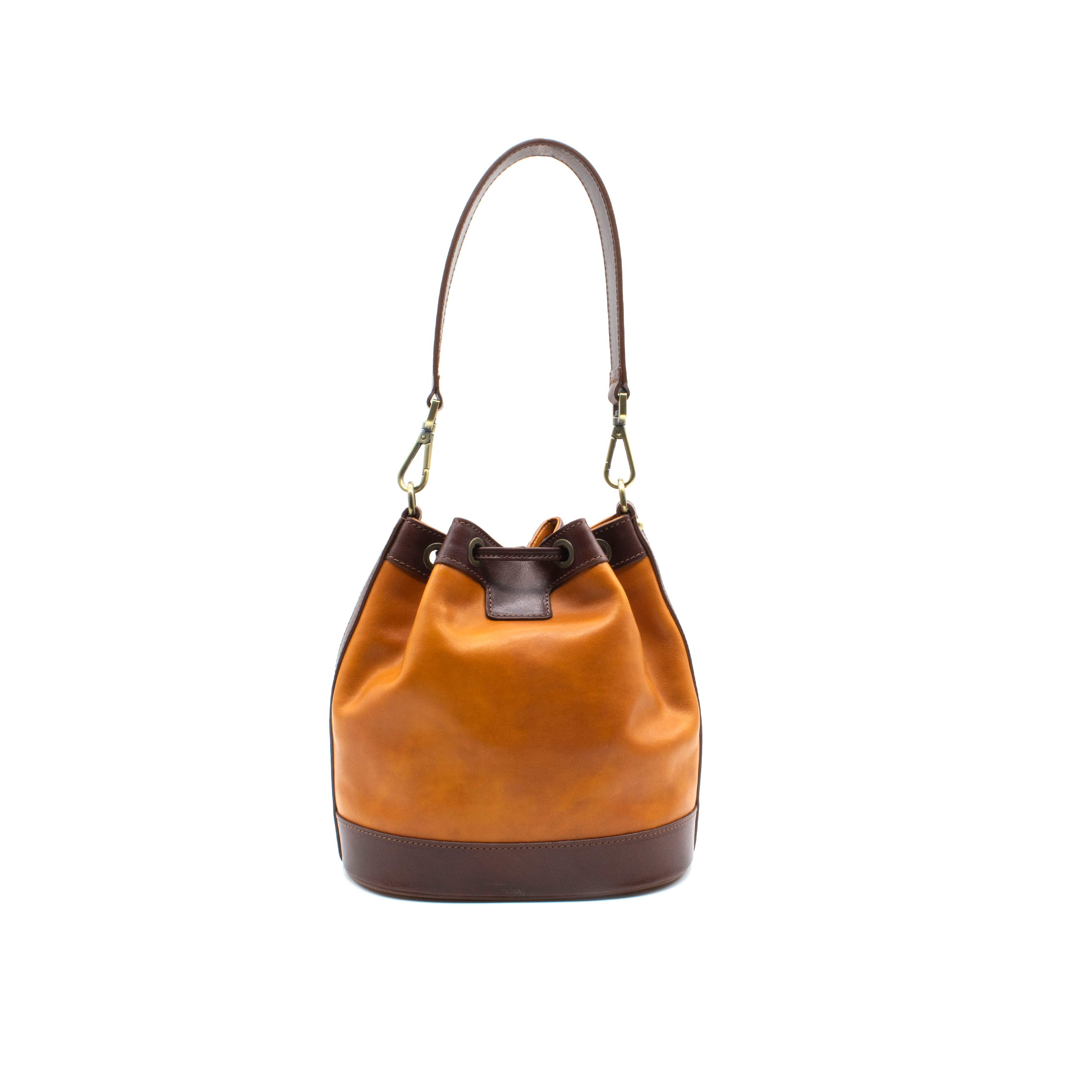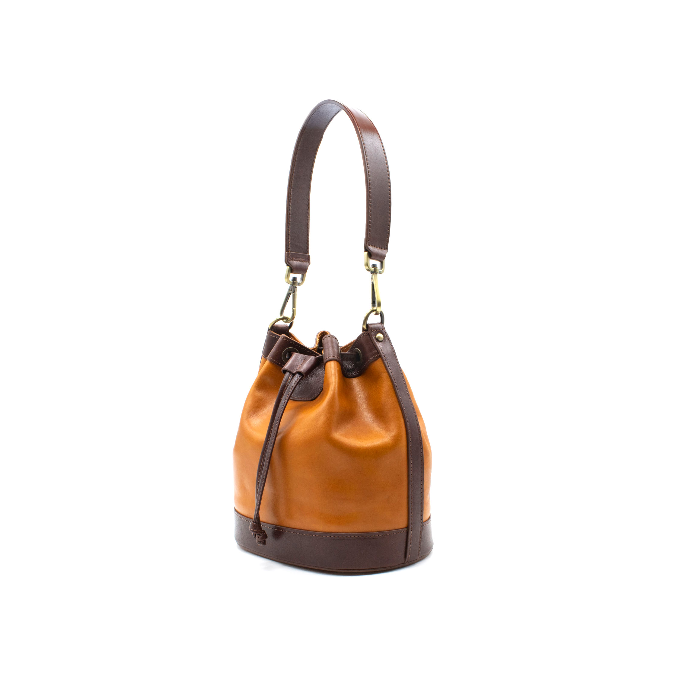 Prima della lavorazione, la pelle viene tinta con estratti vegetali naturali, come mimosa e castagno. Questo processo, tipico dell’artigianato toscano, permette alla pelle di sviluppare nuance uniche e irripetibili con l’uso e l’esposizione alla luce, rendendo ogni secchiello un pezzo originale e personale.